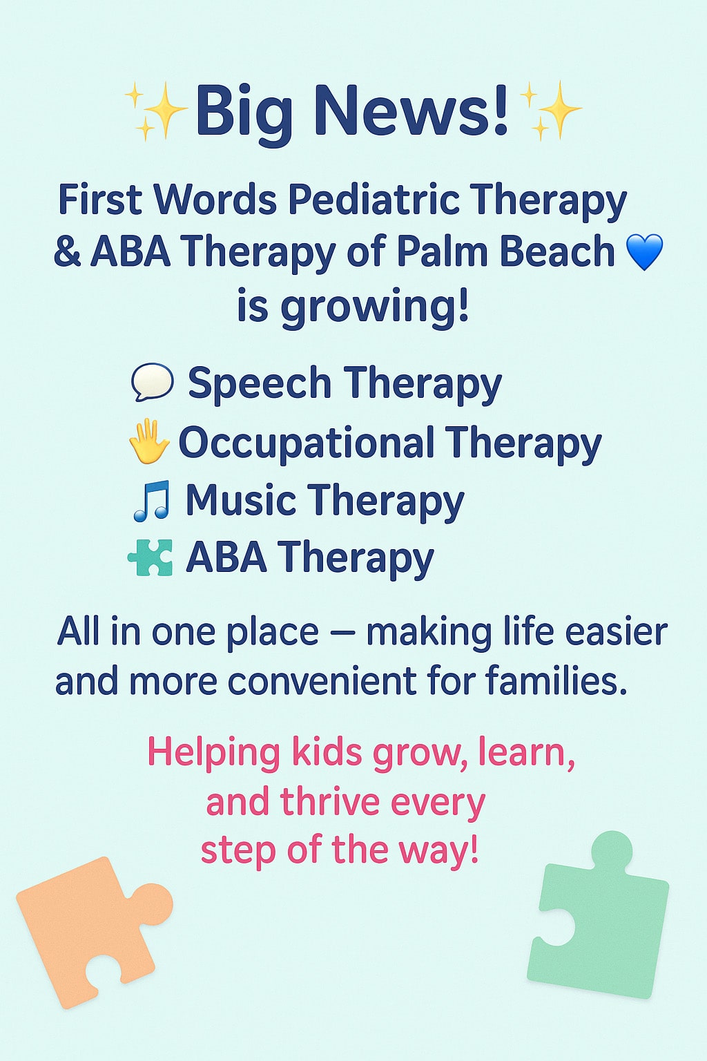 First Words Pediatric Therapy is predominantly focused on serving the Hispanic community in the West Palm Beach area.